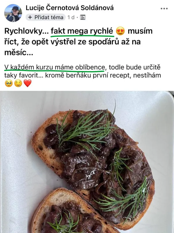 Získej moje know how rychlýho vaření a nauč se za půl hodiny vykouzlit nezapomenutelný zažitky na talíři.